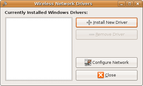 Ndisgtk enfin installé, vous pouvez l'ouvrir en cliquant sur Système → Administration → Pilotes sans fil Windows Vous obtiendrez cette fenêtre :